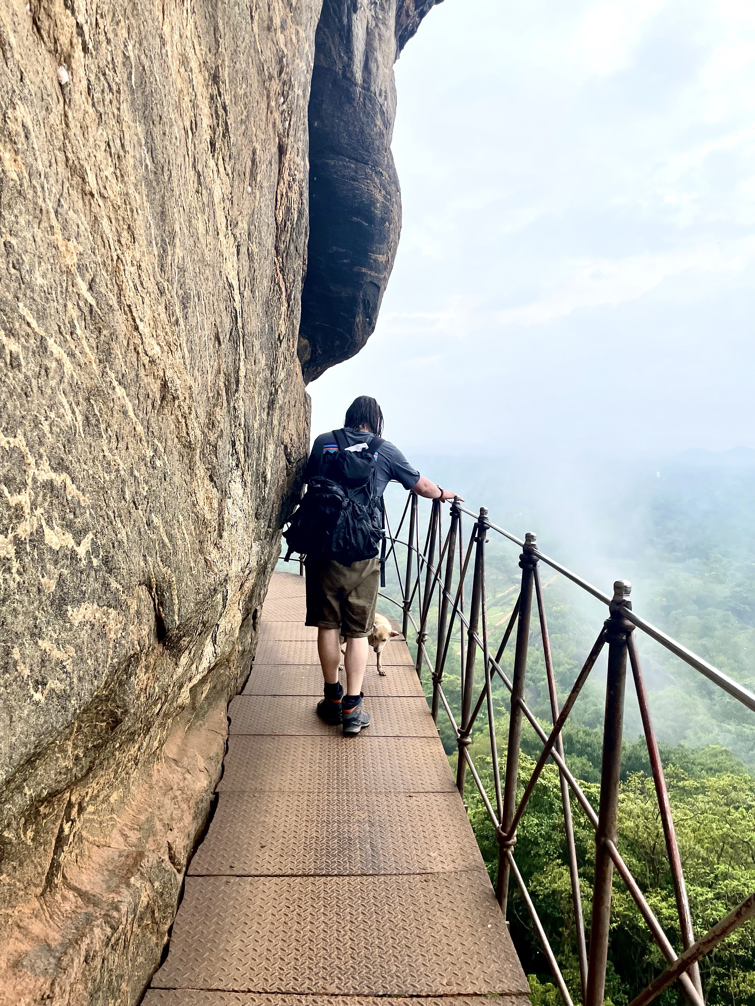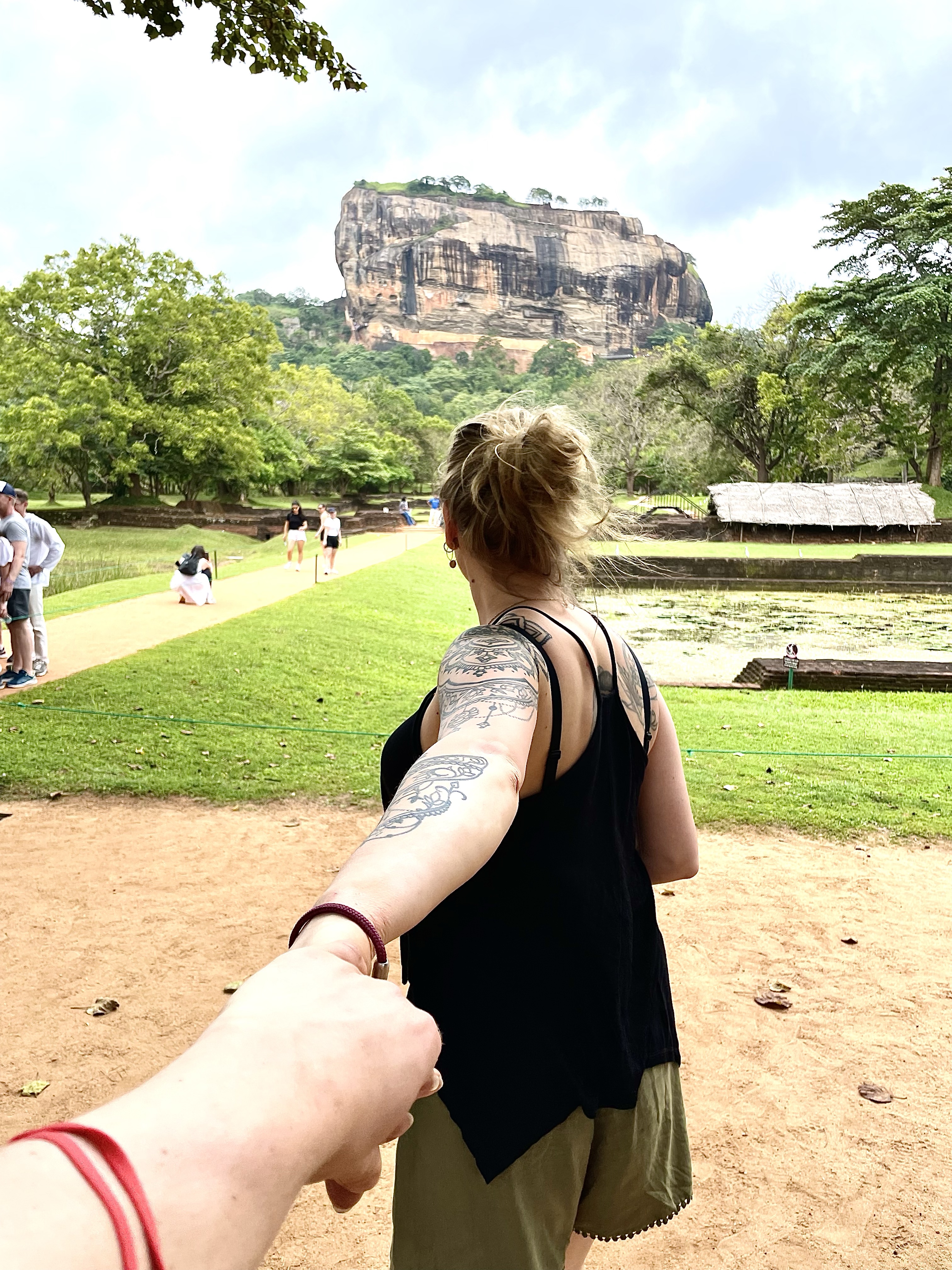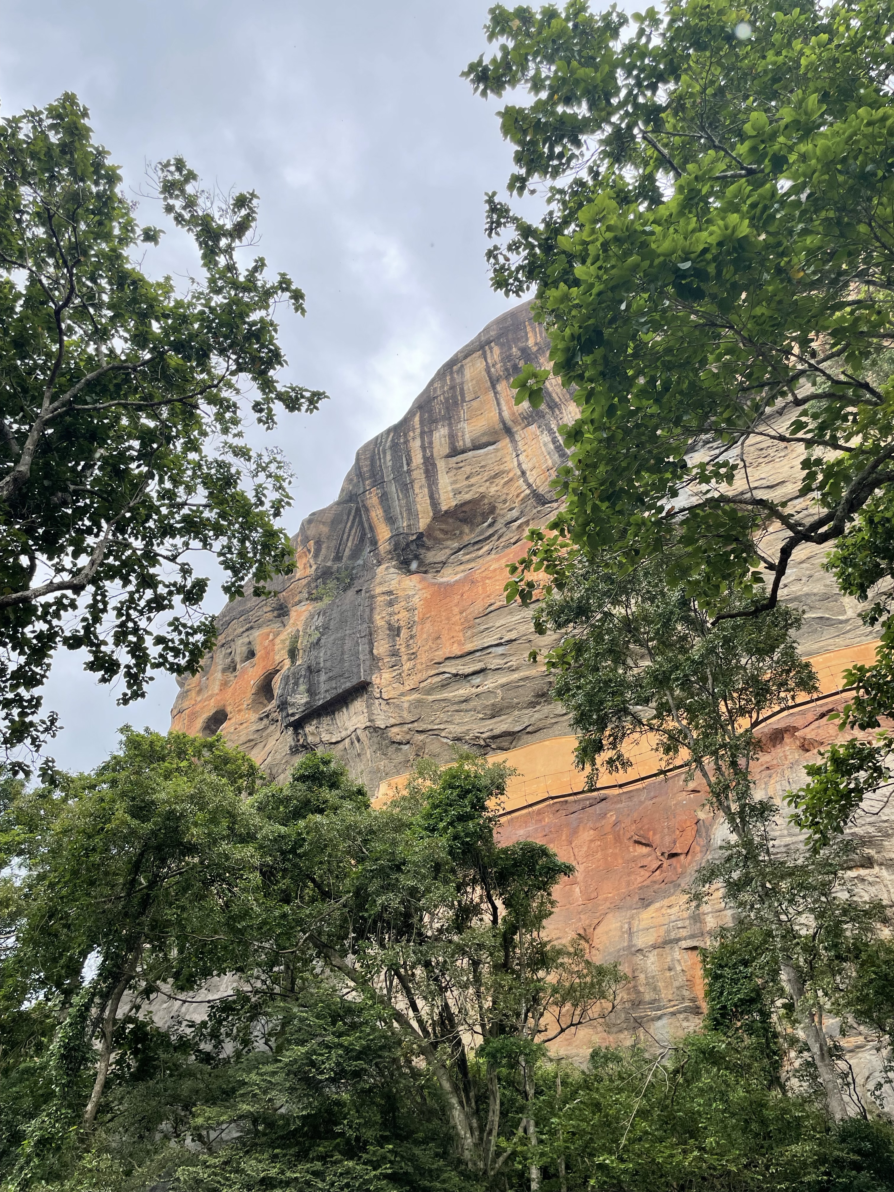 Da wir nun wettertechnisch relatives Pech hatten als wir am ersten Tag auf den Lions Rock gestiegen sind, ging es für uns am letzten Tag in Dambulla auf den benachbarten Pidurangala. Viele besteigen diesen zum Sonnenaufgang, jedoch war es bei uns morgens sehr bewölkt und bedeckt, dass wir lieber noch ein bisschen Energie getankt haben und den Aufstieg auf den späteren Vormittag verlegt haben. Der Weg zum Felsen ist super ausgeschildert und mit einem Parkplatz ausgestattet, wo ihr auch die Möglichkeit habt Getränke oder eine Kokosnuss zu kaufen. Direkt am Anfang passiert ihr ein kleines Stück Tempelgelände, aber keine Panik, Sarongs zum kostenlosen leihen liegen bereit, ihr müsst lediglich die Schuhe ausziehen. Der Eintritt ist mit 1000 Rupees (4-5€) um einiges günstiger als der LionsRock, jedoch ist der Weg nach oben auch etwas abenteuerlicher und von kurzen Klettereinlagen geprägt.